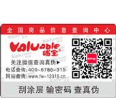 概述:消費(fèi)者在購買已加入電碼防偽系統(tǒng)的企業(yè)所生產(chǎn)的產(chǎn)品時,在產(chǎn)品的包裝上可看到電碼防偽標(biāo)簽。只要揭開標(biāo)識的表層或刮開標(biāo)識的涂層,就可以看到一由16位數(shù)字組成的密碼,此密碼是唯一的,只能使用一次,假冒者無法仿造重復(fù)使用。